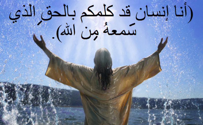 ???? وأنه صرخ فيكم بالفم المليان أنه إنسان : (لأني أنا أيضا إنسان تحت سلطان). (6) وقد شهد له يوحنا بإنه رجل مثل الرجال فقال لكم : (يسوع الناصري رجل قد جاء لكم من قبل الله).(7)