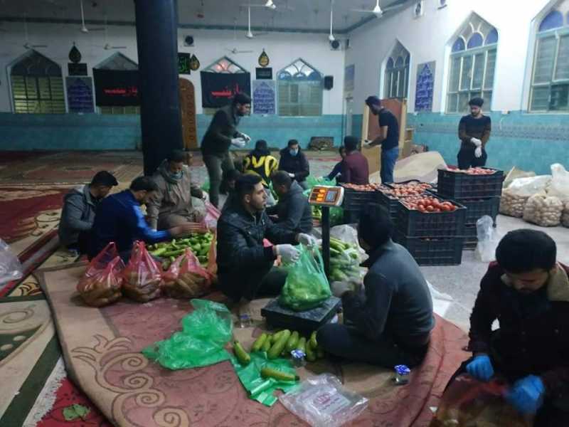 شباب حسينية الامام الحسن المجتبى ( ع ) في الهاشمية يوزعون سلة غذائية على العوائل المتعففة