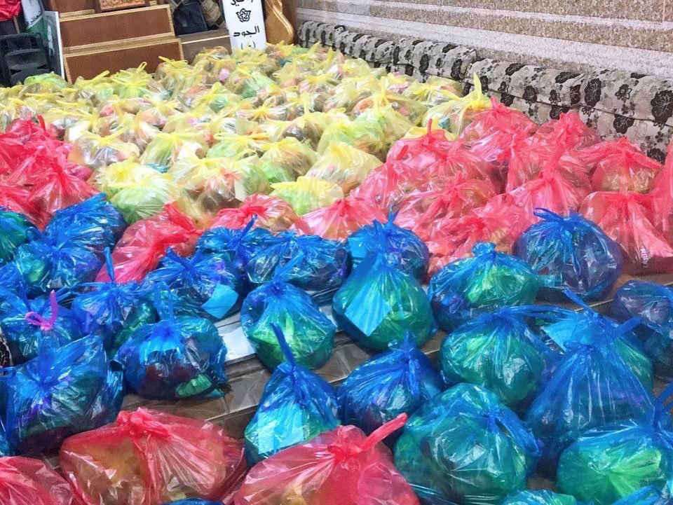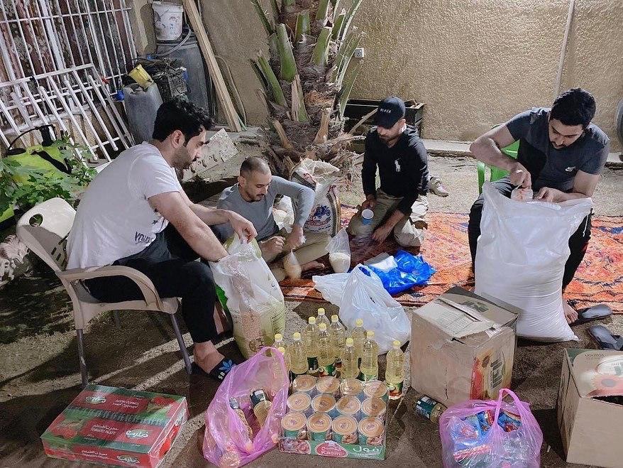 حيث تمت عمليات تعبئة المواد الغذائية الجافة والخضار من قبل الشباب