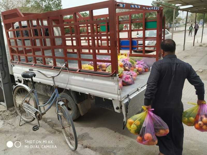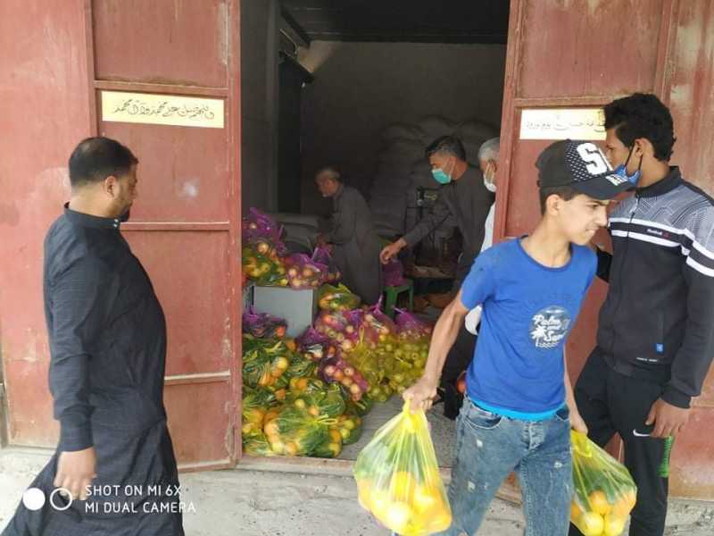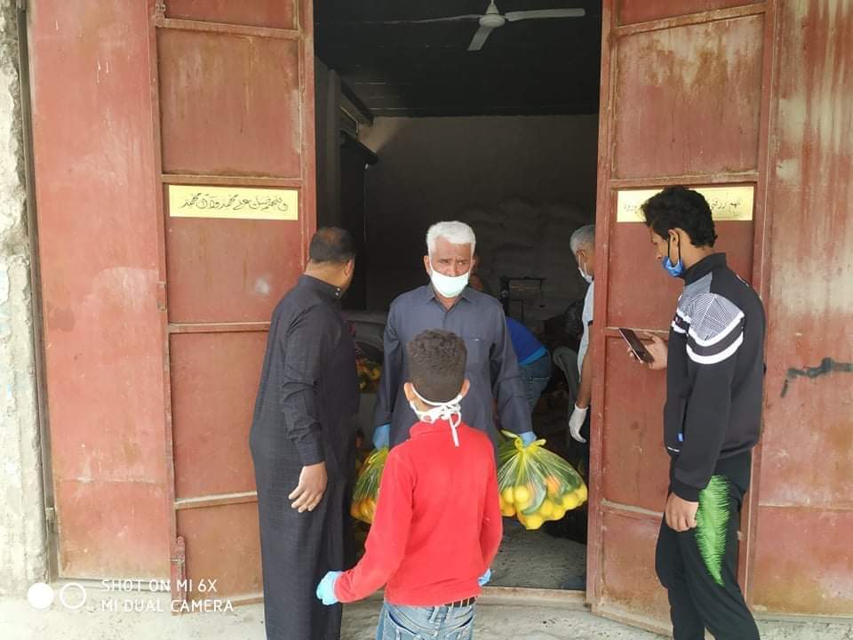 بتوزيع المواد الغذائية والفواكه على العوائل المتعففة في أحياء الناحية