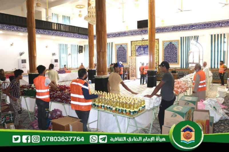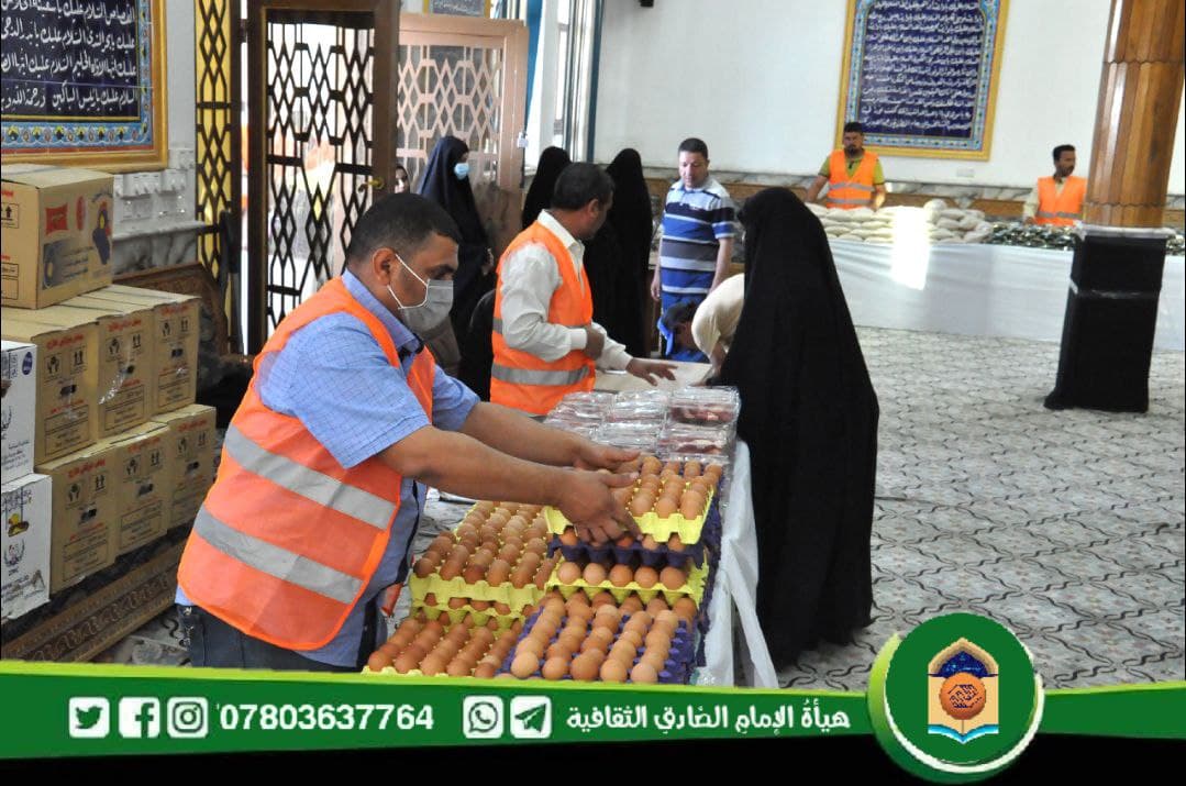 والرطبة على العوائل المتعففة والمتضررة والايتام والعجزة المسجلين