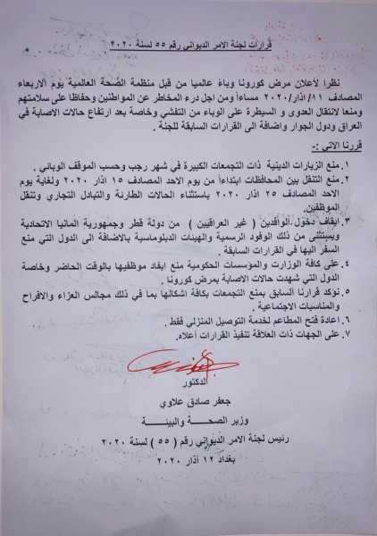 - ايقاف دخول الوافدين من غير العراقيين من قطر والمانيا
