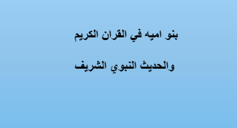 بنو أميه في القران الكريم والحديث النبوي الشريف