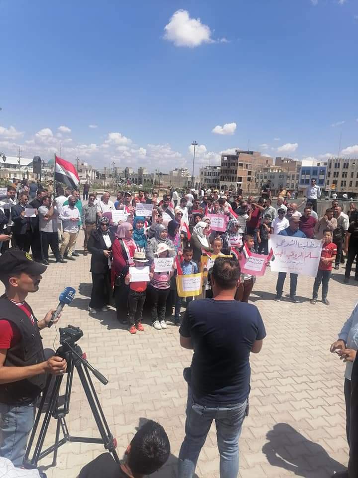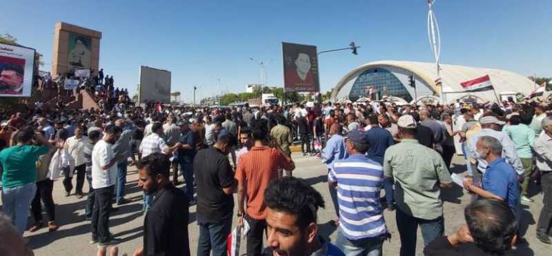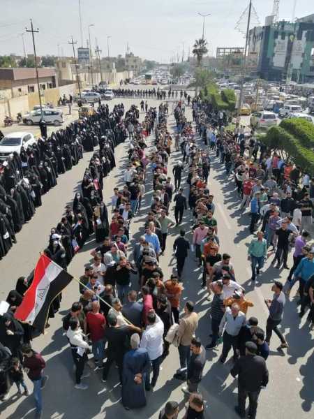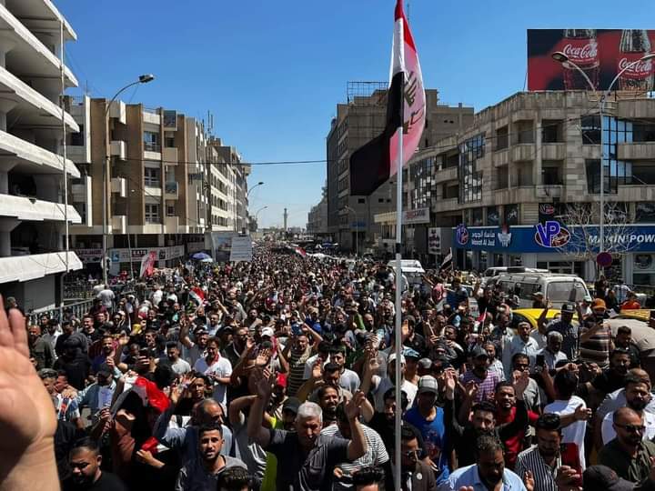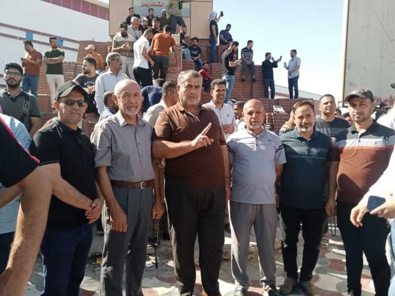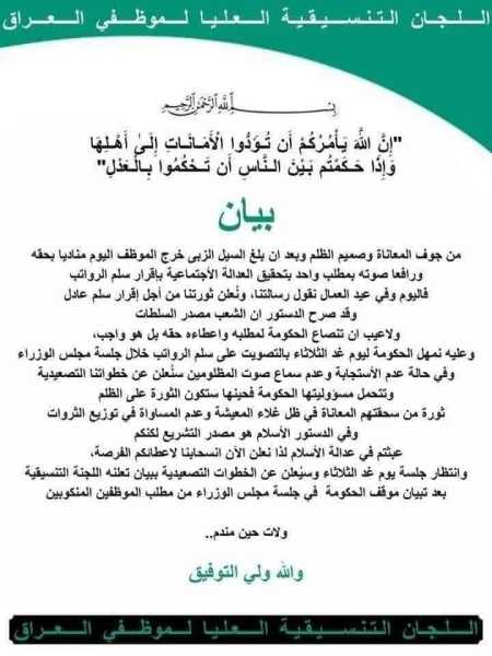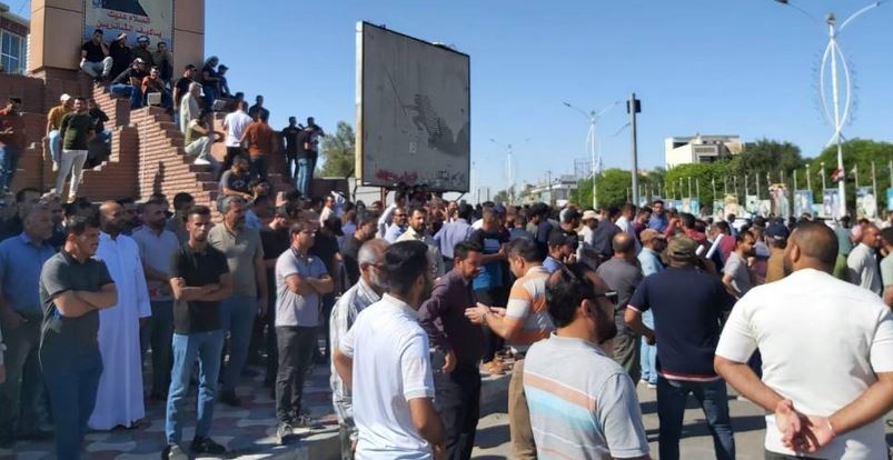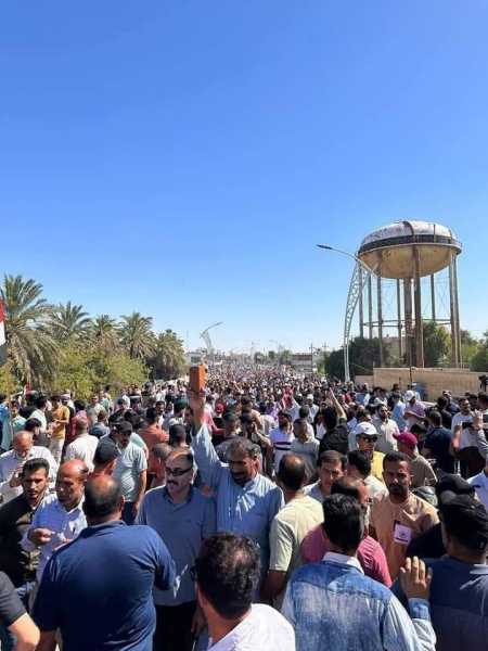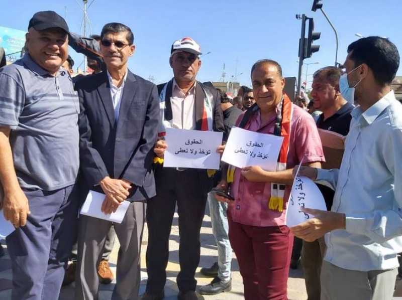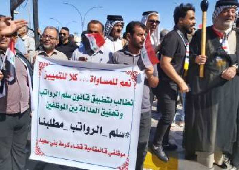 تظاهر موظفي مؤسسات الدولة أمام بهو مدينة الناصرية للمطالبة بتطبيق سلم الرواتب الجديد وتحقيق العدالة الاجتماعية والمساواة .