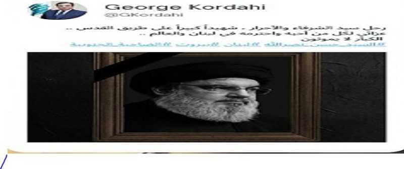 ضجت مواقع التواصل الإجتماعي بالتعليق على خبر شهادة سيد المقاومة الأمين العام لحزب الله السيد حسن نصرالله ، حيث غرد جورج قرداحي كاتباً