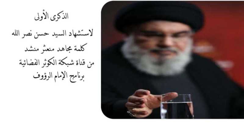 فِي هَذَا الْيَوْمِ نُقَدِّمُ أَسْمَى أَشْوَاقِنَا وَتَعَازِينَا فِي الذِّكْرَى الأُولَى لاسْتِشْهَادِ الرَّجُلِ الْمُجَاهِدِ، السَّيِّدِ حَسَن نَصْرُ الله، رَحِمَهُ اللهُ، الَّذِي صَانَ كَرَامَةَ أُمَّتِهِ وَدَافَعَ بِشَجَاعَتِهِ عَنْ حُقُوقِ الْمُسْتَضْعَفِينَ، وَجَعَلَ مِنْ دَمِهِ سَبِيلًا لِلْحُرِّيَّةِ وَالْعَدْلِ.
