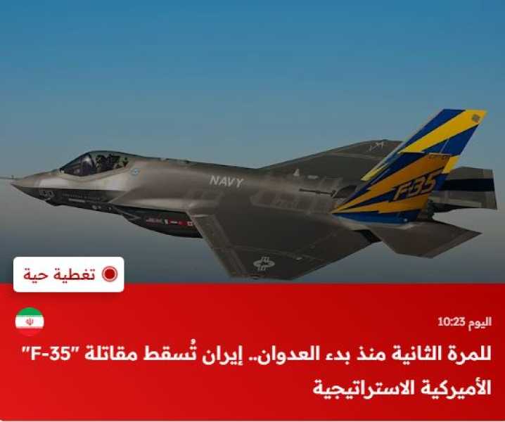 يُذكر أن هذه المرة الثانية منذ بدء العدوان على إيران، التي تستهدف فيها الدفاعات الإيرانية مقاتلة أميركية من هذا الطراز، حيث أعلن حرس الثورة الإيراني في آذار/مارس الفائت، استهداف المقاتلة الاستراتيجية، من طراز "F-35"، التابعة للجيش الأميركي، في سماء وسط إيران.
