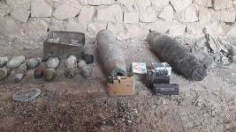 ثلاث عبوات ناسفة مجهزة للتفجير مع عبوة لاصقة وعشرة رؤس متفجرة