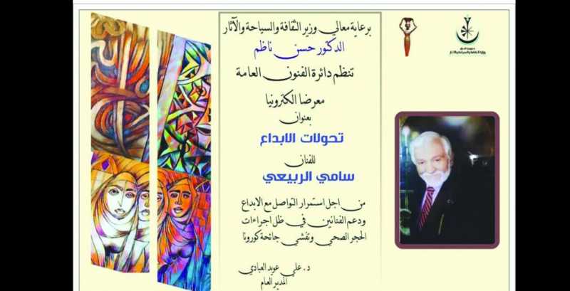 أقيم أمس الأول الخميس، ضمن البوابة الالكترونية لدائرة الفنون العامة معرض تشكيلي للفنان سامي الربيعي تحت عنوان "تحولات الابداع"، ضم ٢٨ لوحة فنية تشكيلية، قدم فيها الفنان الحروف الملونة والرموز المسمارية والبغدادية باسلوب البعد الثالث الالكتروني.
