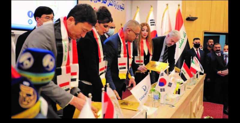 وقعت وزارة النقل، الأربعاء، عقداً مع شركة دايو الكورية لإنشاء خمسة مشاريع للبنى التحتية ضمن مشروع ميناء الفاو الكبير.