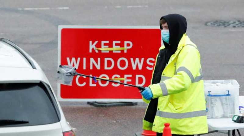 عامل في نظام الرعاية الصحية البريطانية يقوم بإجراء اختبار «كورونا» (رويترز)