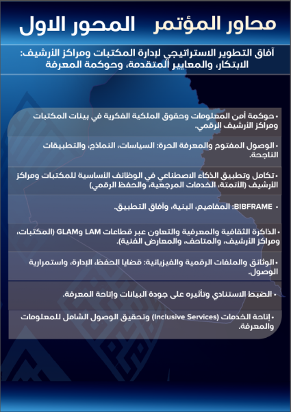 المحور الأول: آفاق التطوير الاستراتيجي لإدارة المكتبات ومراكز الأرشيف: الابتكار، المعايير المتقدمة، وحوكمة المعرفة.