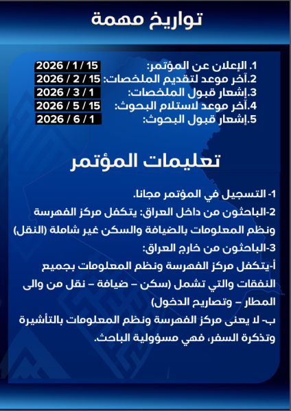 - الإعلان عن المؤتمر: 15 / 1 / 2026.